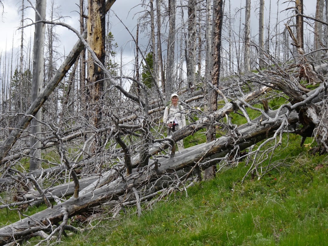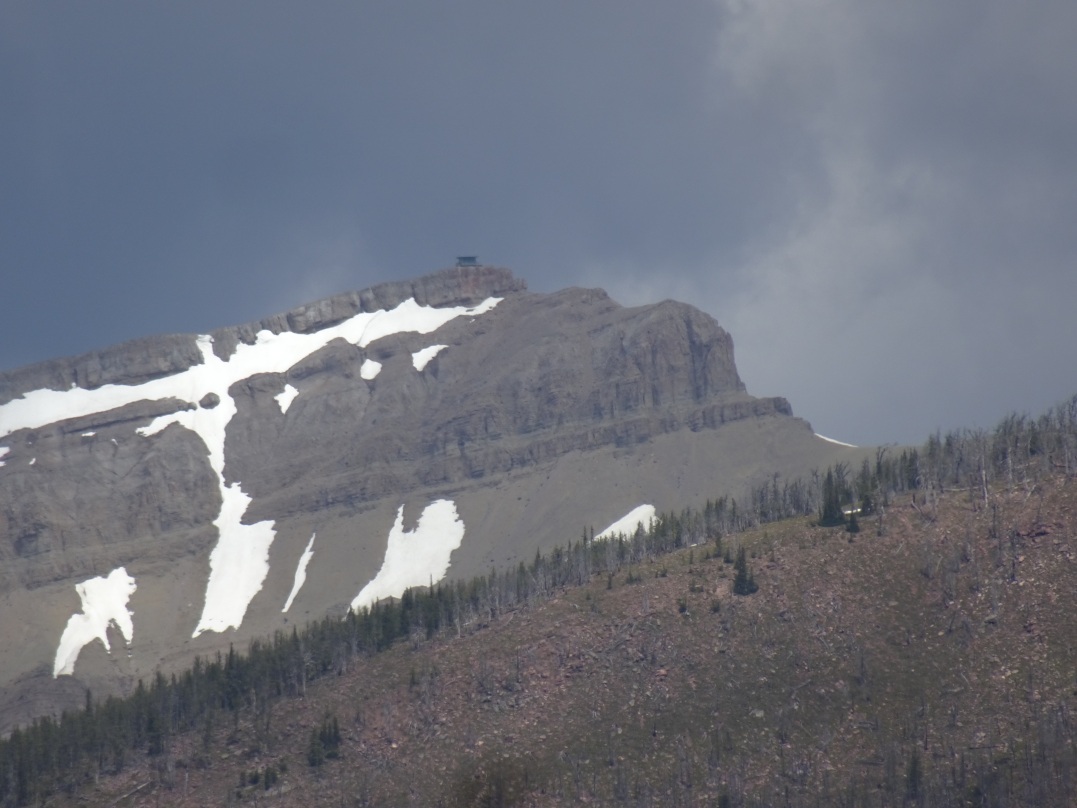 From the town of Augusta, drive 31 miles westerly past Nilan Reservoir to the Benchmark Trailhead. The driving route is well signed, and the gravel road is suitable for nearly all vehicles. The Benchmark trailhead is one of the primary entry points into the Bob Marshall Wilderness area and is heavily used by both backpackers and stock. Head north 1.7 miles from the trailhead on the main trail, across the packbridge, and look for the Deadman’s Hill trail (USFS Tr. 276) on your left immediately after crossing Deer Creek. While it is often possible to hop across Deer Creek, it would be wise to be prepared to take your boots off for a shallow crossing – especially early in the season. The Deadman Hill trail heads up to the left (west) immediately after crossing Deer Creek and isn’t shown on all maps, but it is depicted on both the USFS Bob Marshall Wilderness map, and the excellent Caird Cartographics map of the Bob Marshall Wilderness Complex (South Half). The Deadman Hill trail is well defined, but very lightly used outside of hunting season, so expect some deadfall. The trail climbs at a nice grade through the 2007 Ahorn burn and offers good views of the surrounding terrain for much of the climb. The summit includes some remnants of the fire lookout camp that used to occupy this summit until the 1950’s. Both the Prairie Reef (W7M/CL-007) and Patrol Mountain (W7M/CL-059) lookouts (which are still used) are visible from the summit. Note that this is Grizzly country – so it is prudent to carry Bear Spray.