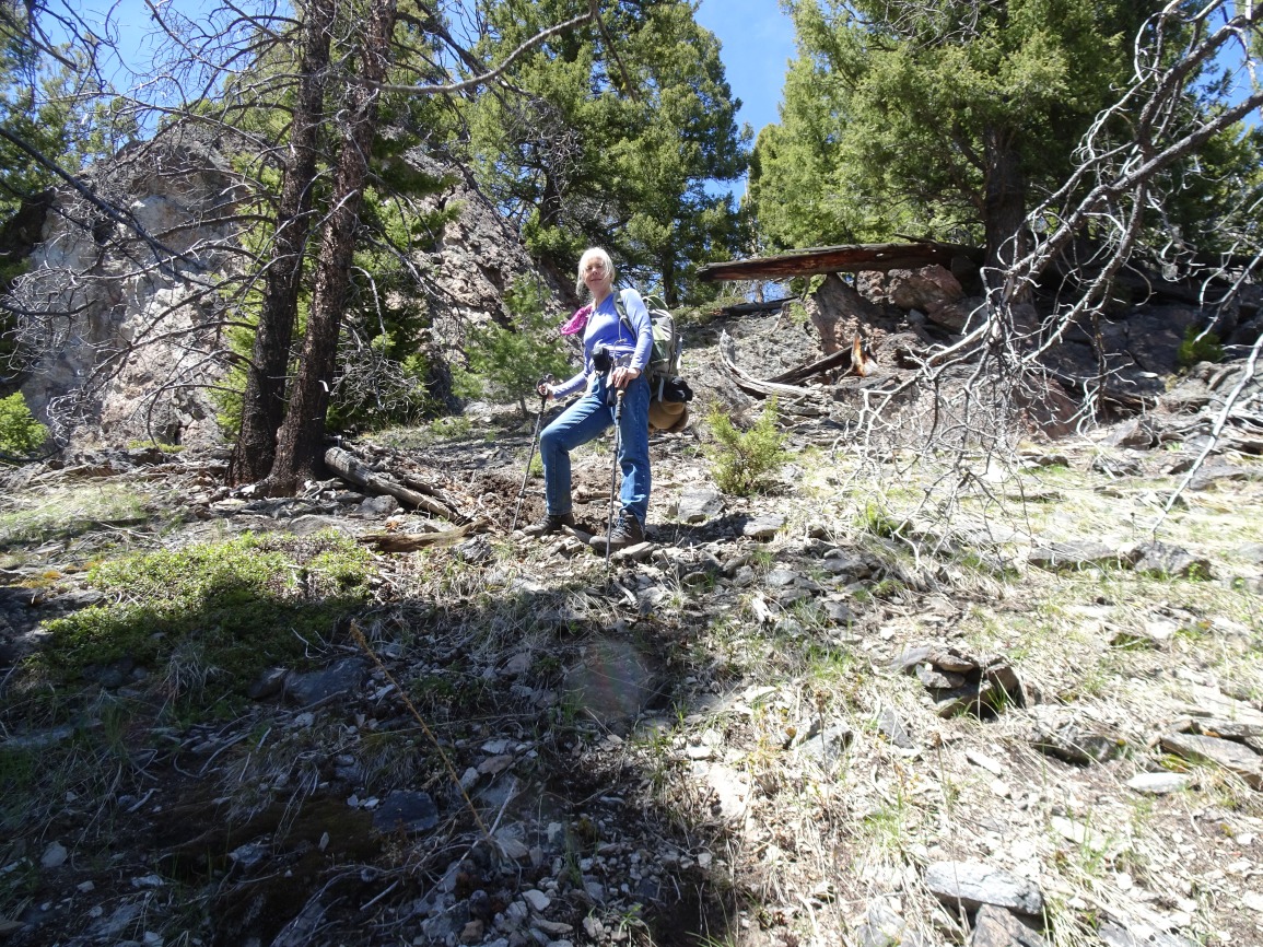 The road to the quarry appears suitable for most vehicles and would shorten the hike to 0.5 miles and +500 / -80 vertical feet. This road can be accessed from Galena Gulch (I-15 Exit 160) between Boulder and Basin. There are lots of roads in this area and lots of deadfall, so it is advisable to take a map and a chainsaw if you choose this route. I drove most of the road after our activation and it was suitable for most vehicles, but I was blocked by a downed tree that had only been cut wide enough for an ATV.