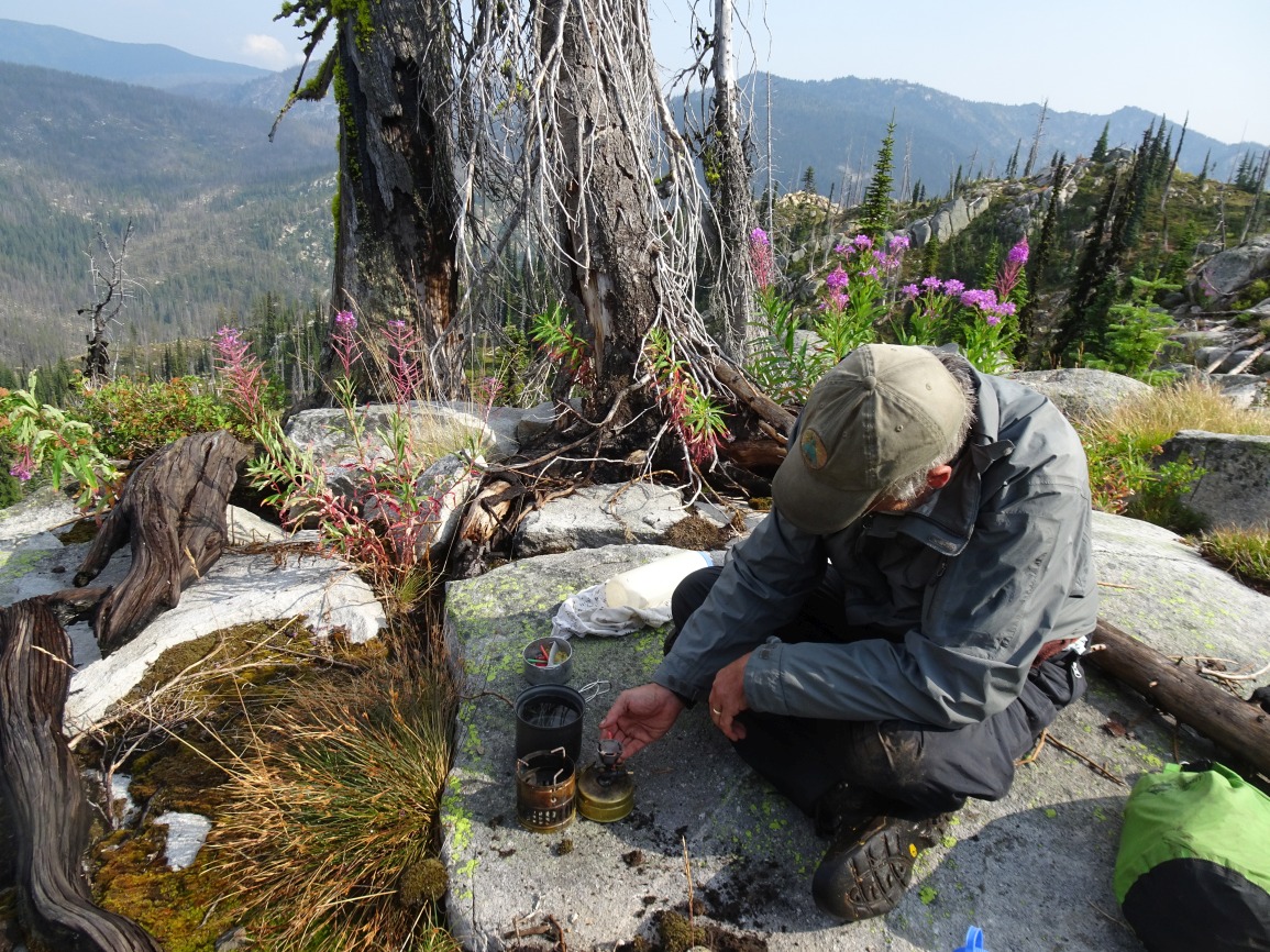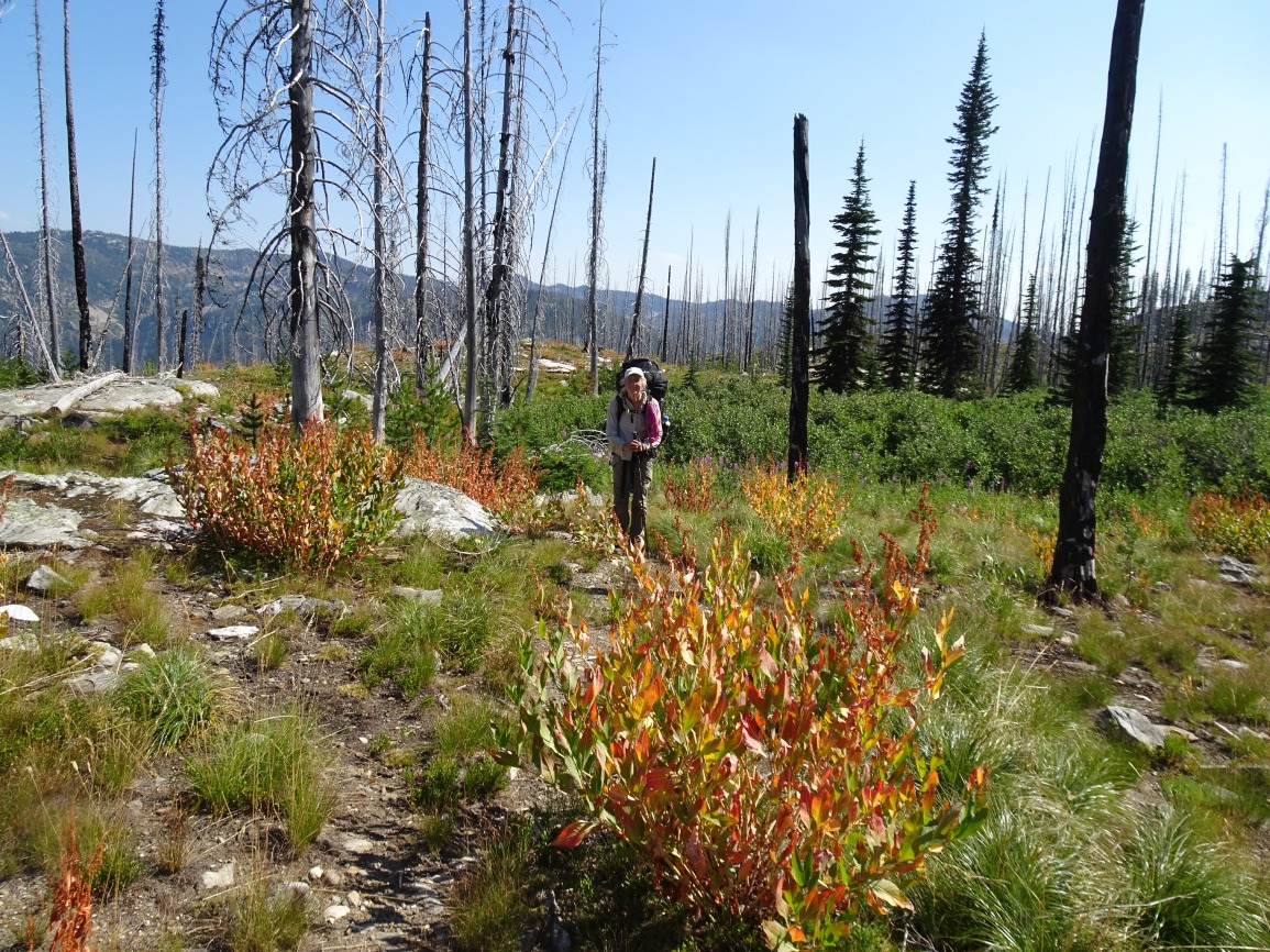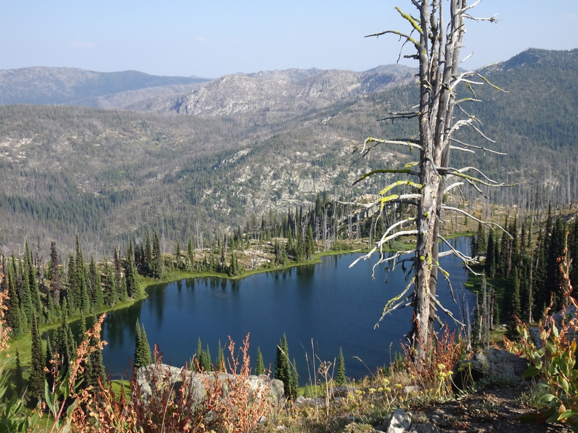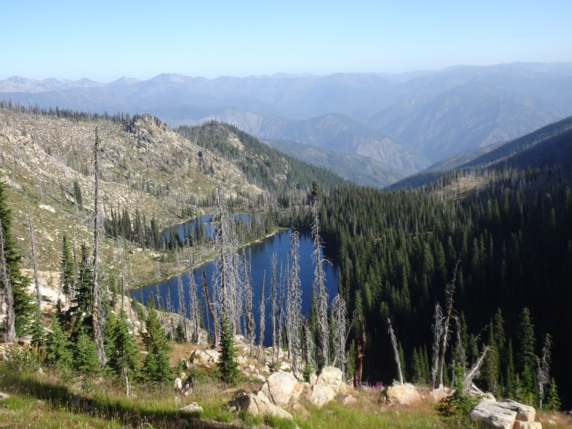 The trail is very well maintained and leaves from the east side of the parking lot. Follow the trail over the shoulder of Elk Mountain, then down its north ridge through a pretty meadow, and onwards as it descends towards Bilk Mountain. The trail switchbacks steeply down the east side of the Elk-Bilk ridge, then contours around the south slopes of the Bilk SE-Ridge before climbing back up to a trail junction in the saddle on the southeast ridge of Bilk. Turning left at the trail junction will take you to Bilk Mountain. Continue over Bilk Mountain and down to Grave Meadow where there is water and good camping. Most of the area between Bilk Mountain and Buck Lake is in the 2017 Buck Lake Creek burn. The hike from Buck Lake to Drake Saddle and onwards to Highland Ridge Summit is in a burn from about 2009. The entirety of the hike from Indian Park to Highline Ridge is a beautiful ridge hike within the Selway-Bitterroot Wilderness, passing though fields of flowers, huckleberry patches, and copses of unburnt timber.