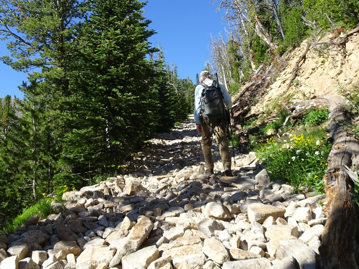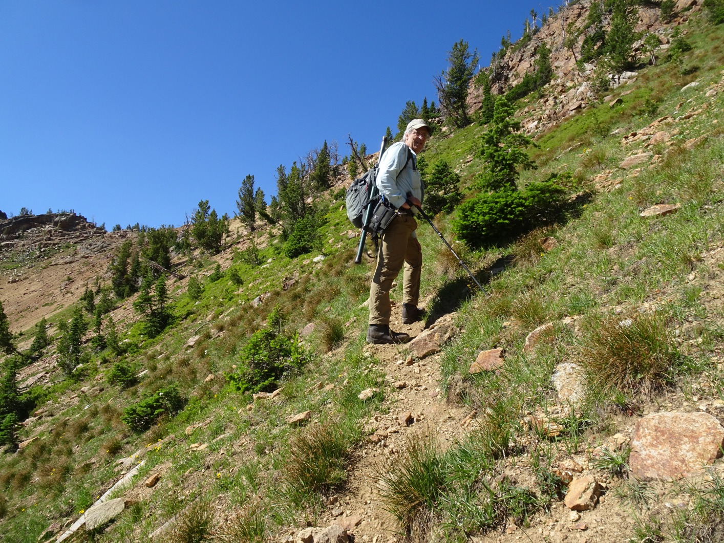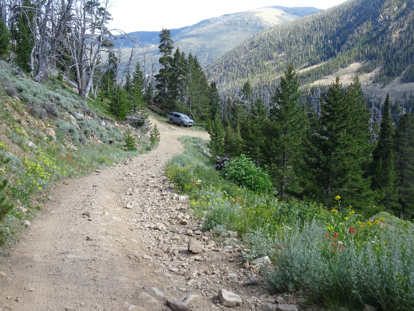 Take the gravel road that exits southeast from the east side of the town of Pony (Mile 0.0). Follow the signs to “South Willow Creek”, or “Potosi Campground”. Turn right at the major junction (Mile 3.1) and continue following the signs to South Willow Creek and Potosi Campground. Continue southwest up the road past Potosi Campground. Stay to the right (towards Granite Lake) at the turnoff for Bell Lake (Mile 11.3). While the road was suitable for most vehicles to this point, it becomes rougher at the Bell-Granite “Y”. 4wd and some clearance is advisable past this point. Watch closely for the steep turn-off to the right (Mile 12.7). This road (USFS 9605) definitely requires 4wd and low range but is suitable for all stock 4wd’s that have reasonable clearance. The road switchbacks steeply up the mountainside to a “T” (Mile 13.6). Although the road is passable for another mile or so, the USFS MVUM (Tobacco Root Mountains Motor Vehicle Use Map) does not permit full sized vehicles past this point. Note that there were no signs in 2022 to indicate trail junctions or use restrictions.