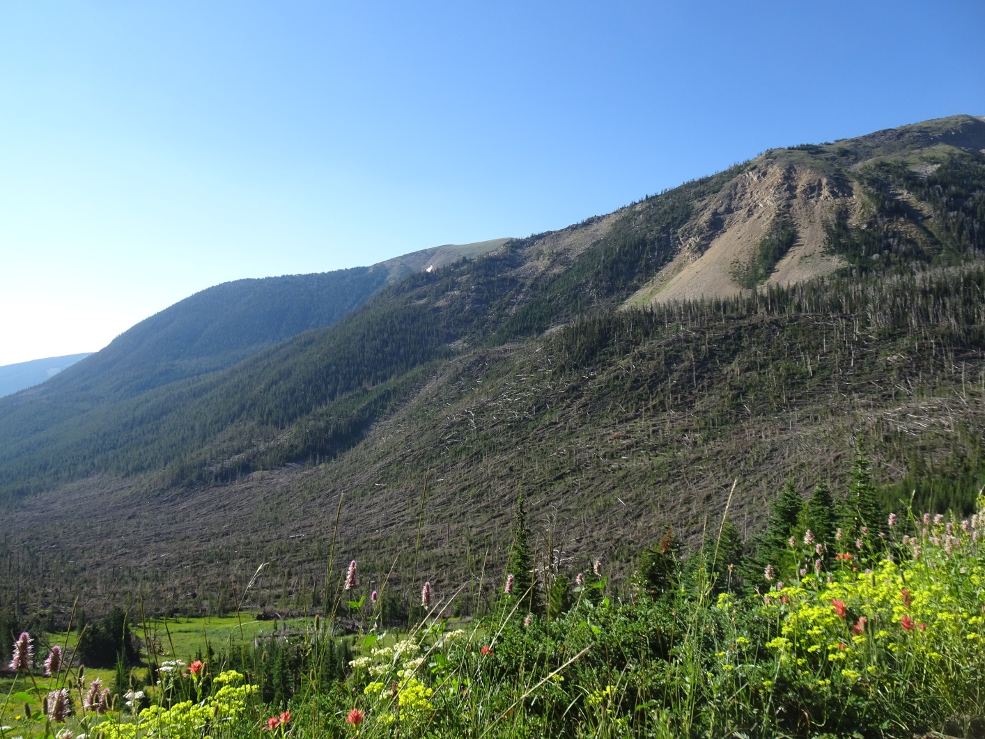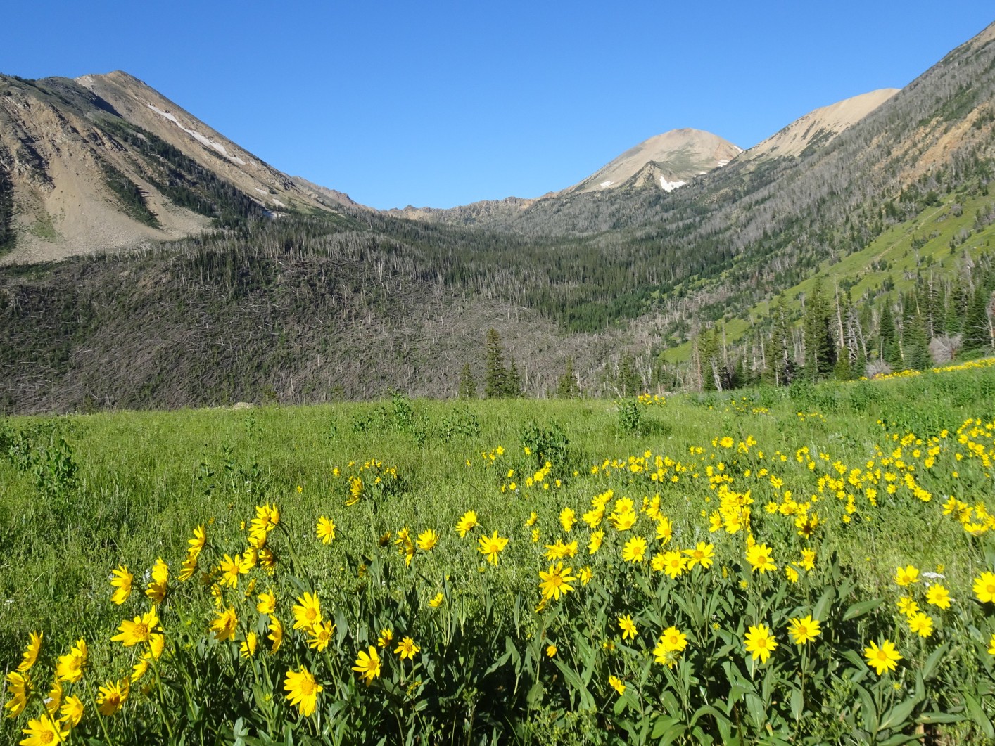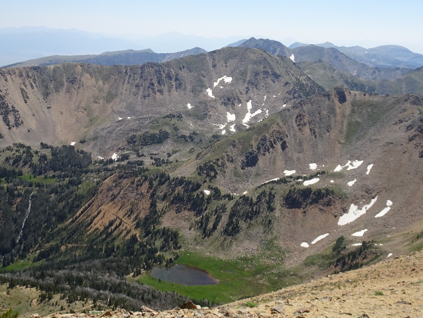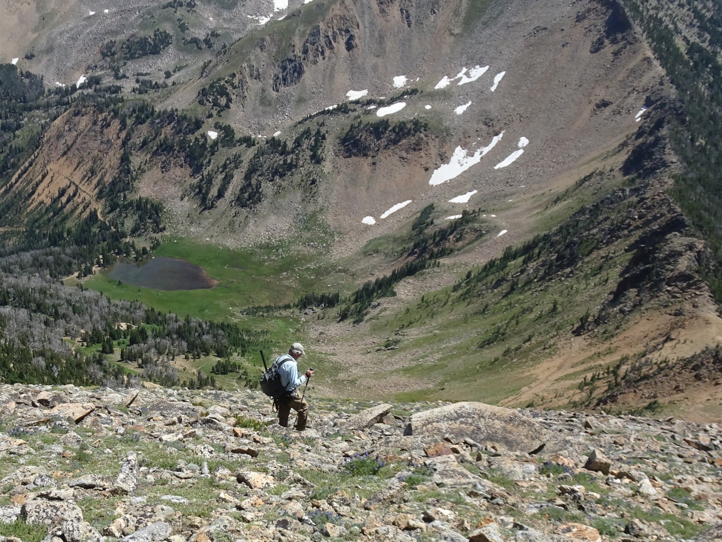 From the trailhead, follow the road to the west, staying left at the “Y” in the open meadow (Mile 0.4). Take note of Granite Peak further up the valley and the large blowdown in the valley to the south. The blowdown leveled 200 to 250 acres of trees during a 2-3 minute microburst in 2019, stranding several OHV users. Continue following the OHV road as it ascends towards Granite Lake staying to the right at any trail junctions until the “Y” near Granite Lake (Mile 2.8; Elevation 9,000 ft). Note that although both forks of this road are obviously used by OHV’s, the MVUM only permits OHV’s on the left fork to Granite Lake. Stay to the right at the Granite Lake “Y” and continue to the first switchback (Mile 3.25; Elevation 9,470). Leave the main road at this switchback and follow the old mining road for a short distance to the southwest watching closely for a faint game/foot trail that contours diagonally up the open slope. Follow the game/foot trail up to where it crosses the saddle on the south ridge of Granite Peak just south (left) of a rock promontory on the ridge crest. Upon reaching the ridge crest, scramble directly over the top of the rock promontory and on to the summit.