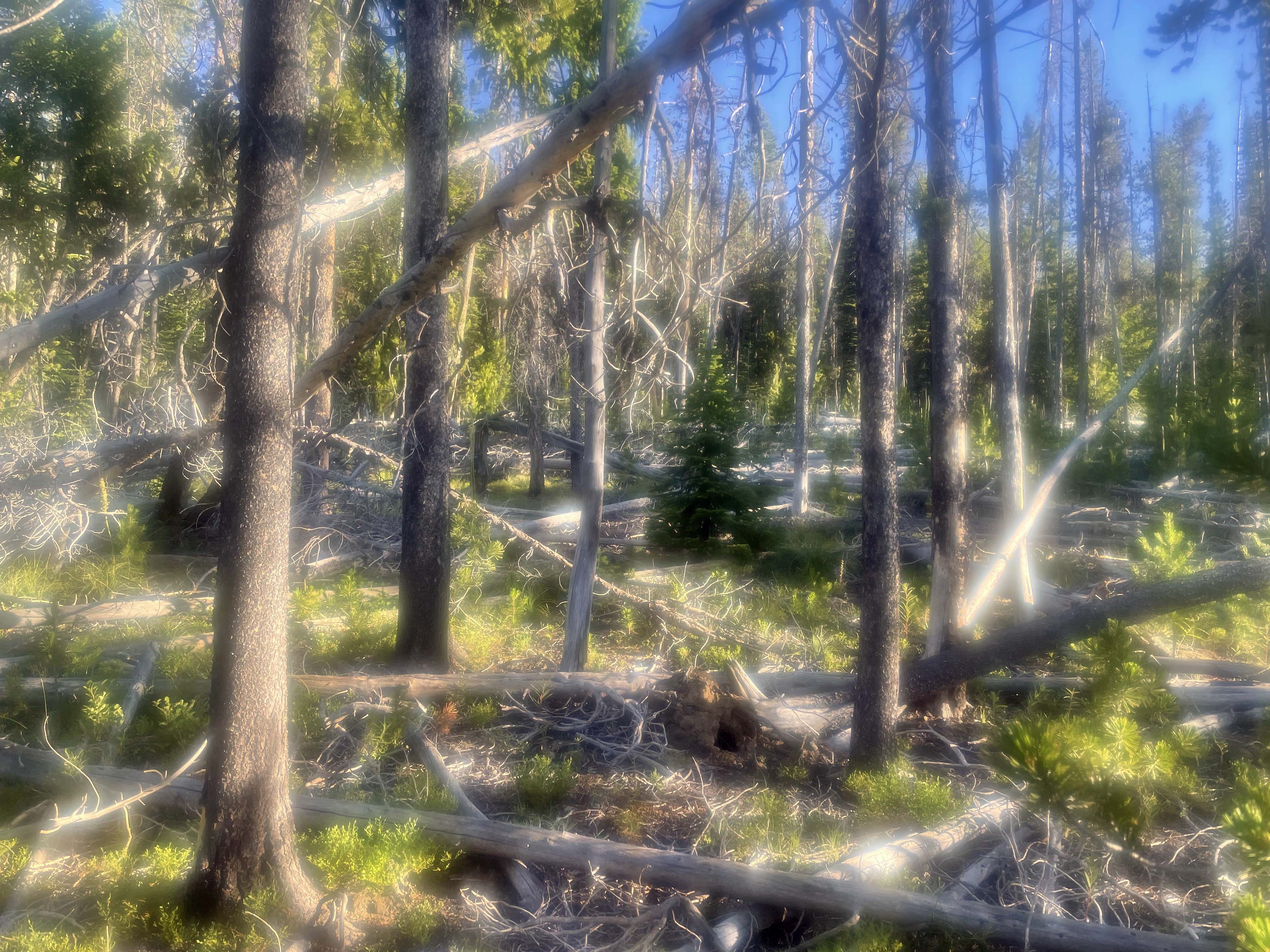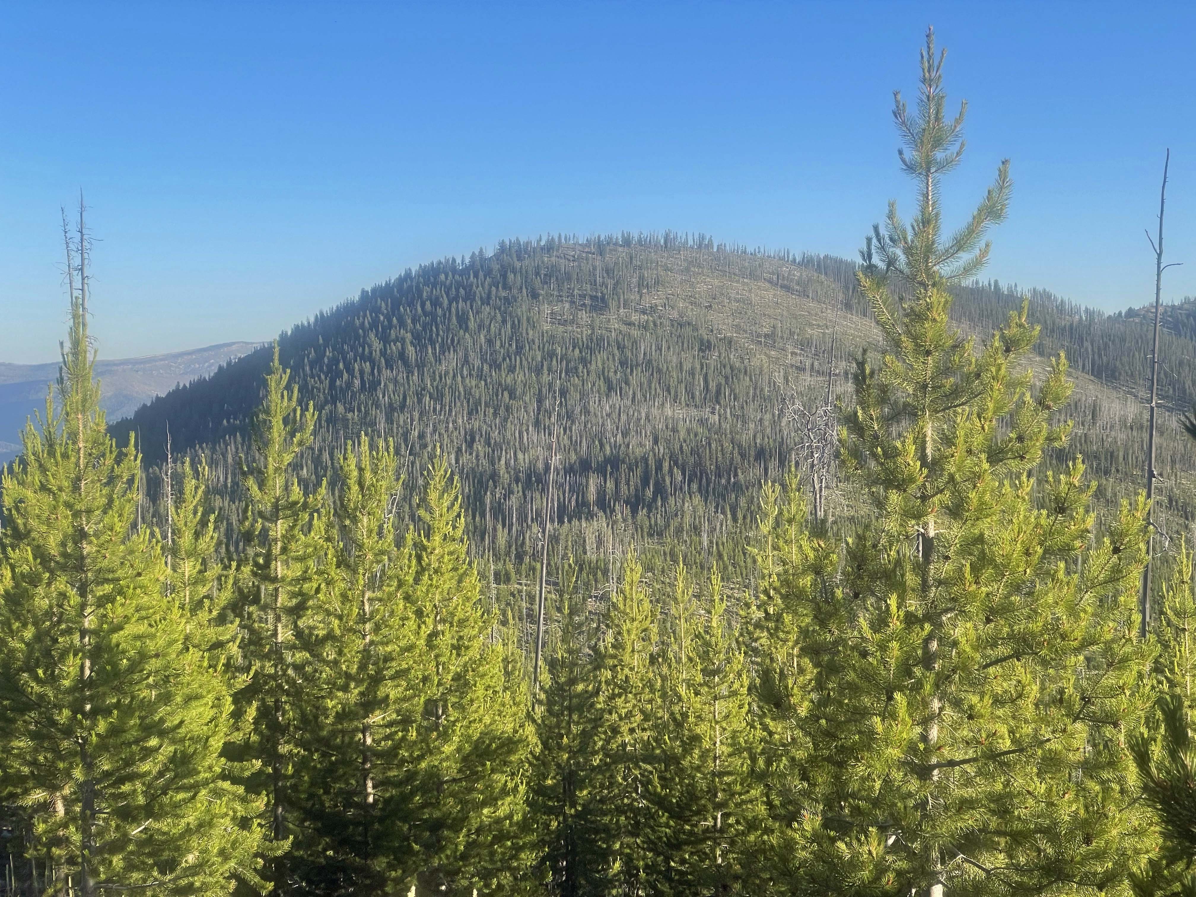 Reaching the summit requires an off-trail bushwack of approximately ½ mile while attempting to avoid windfall beetle and fire killed lodgepole pine. The biggest challenge is determining when to exit maintained trail #13 to avoid a ‘sea of windfall’. See the directions below.