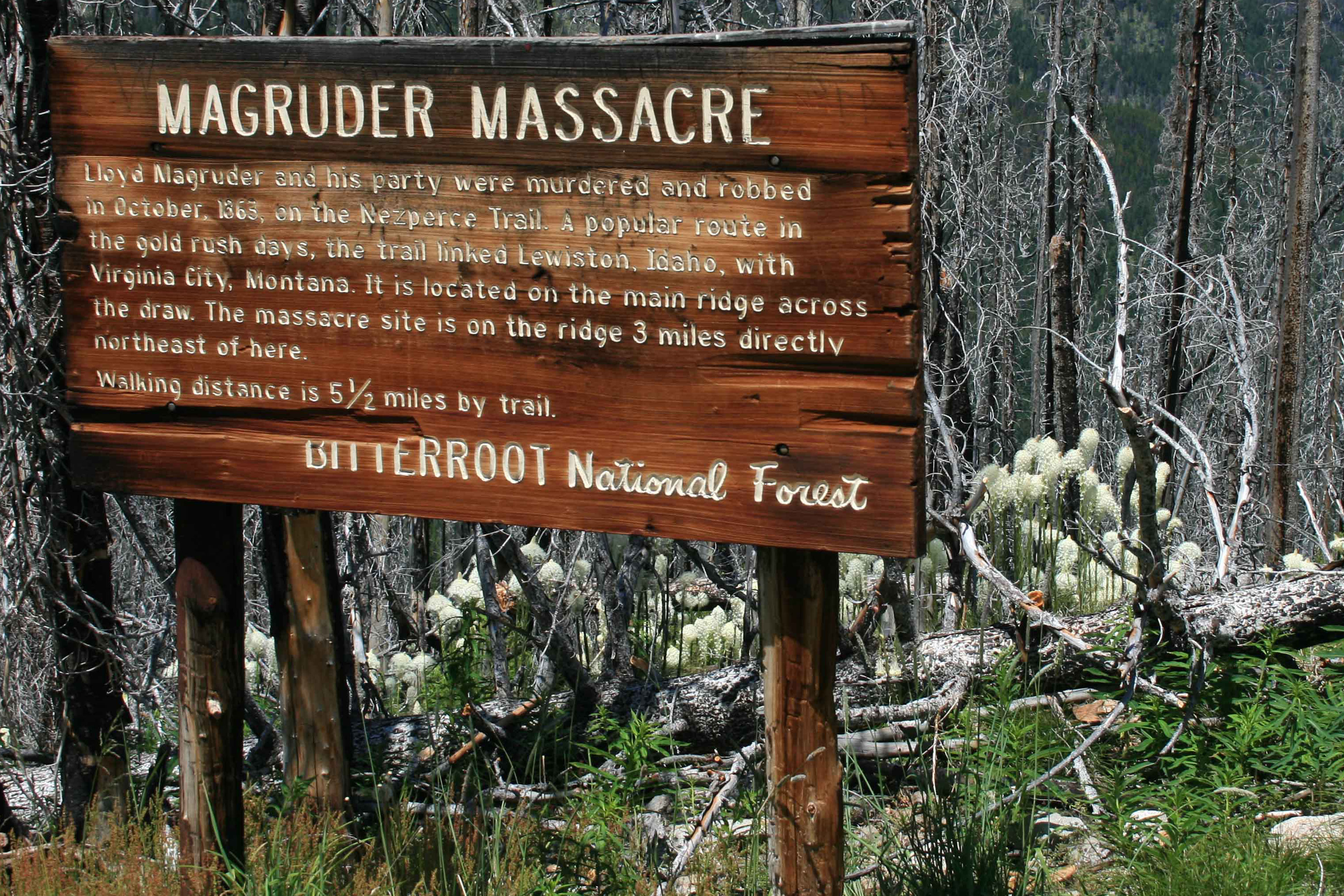 Directions: South of Darby, MT approximately 4 miles turn right onto the West Fork Bitterroot River Road. Travel on this road approximately 14 miles to the Nez Perce Fork Road, FS #468 (Magruder Corridor). Turn Right onto FS #468 and travel approximately 47 miles to the trailhead. A shortcut trail is unsigned and is 1 mile beyond the signed FS#7 trailhead and the Magruder Massacre sign. Location is 45.68181, -114.81042.