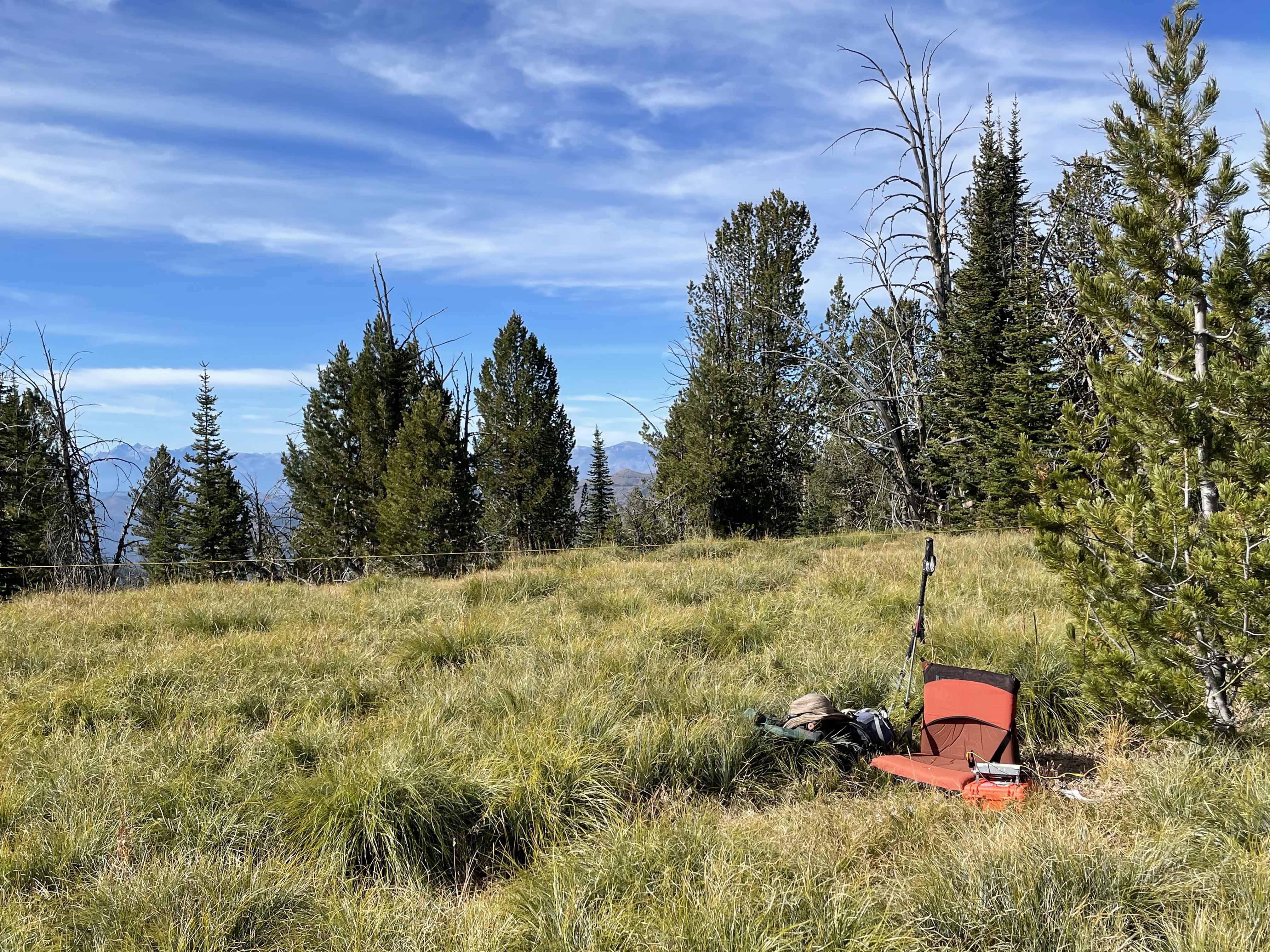 Trail #313 does not go directly to the summit. A 200’ off-trail easy bushwack is necessary to reach the summit. The mostly open grass, sedge and beargrass summit has distant views of high mountains of the Anaconda-Pintler and Selway-Bitterroot Wilderness Areas and the Flint Mountain Range. There are ample trees for hanging wire antennas.