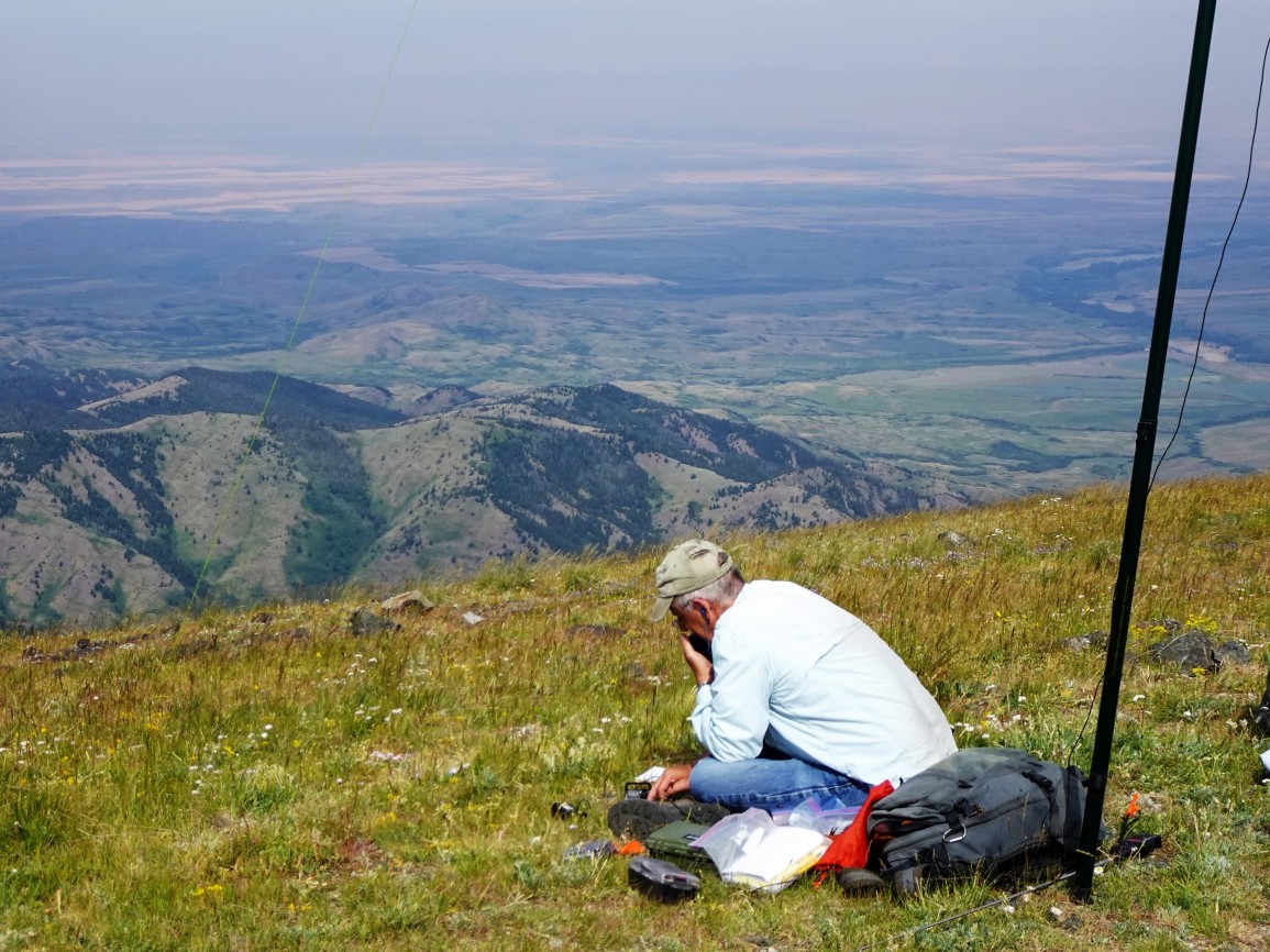 Hike along the access road from the trailhead for 2.7 miles to the summit. There is a large grassy area in the activation zone between the two electronic sites that provides for a nice QTH with great views of the surrounding mountains and plains. I found SSB to be challenging due to a high noise floor – perhaps from the nearby electronic sites. CW worked better, but QRM was still problematic.
