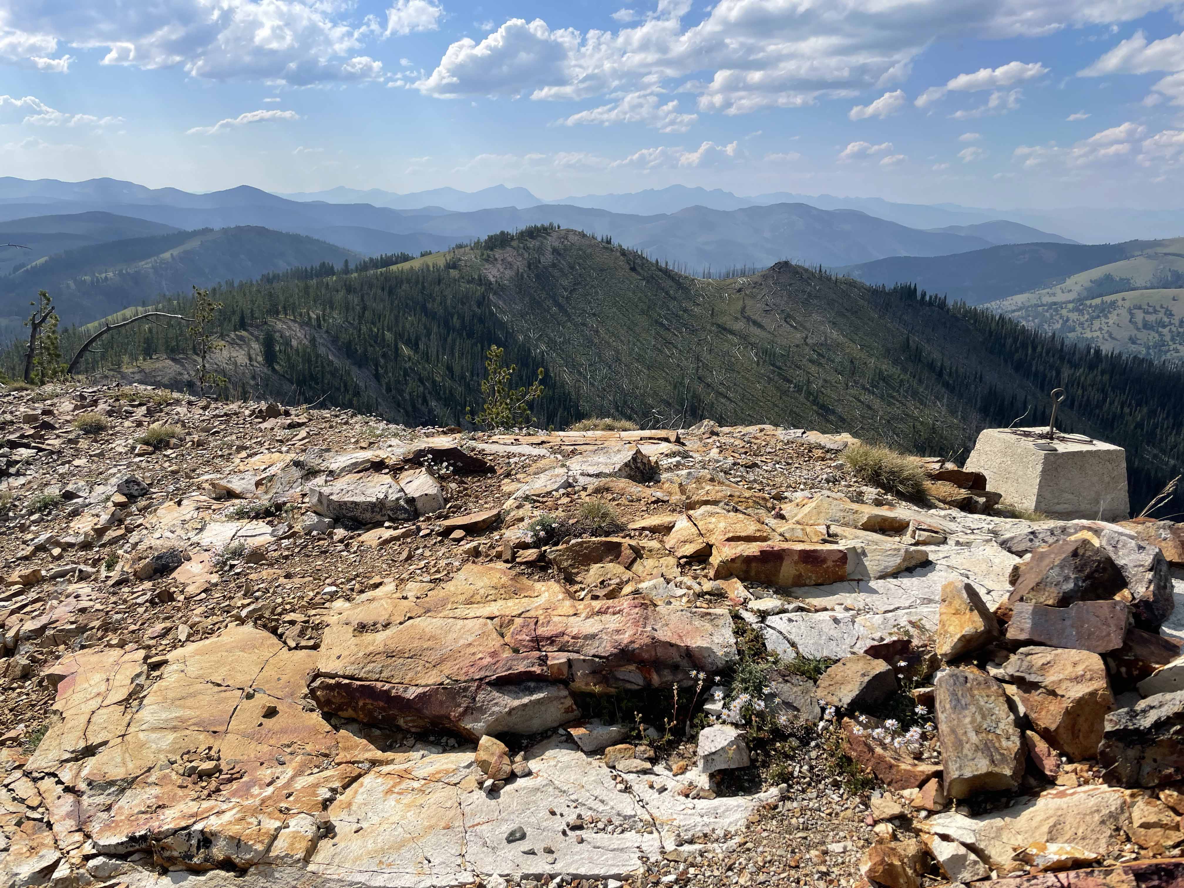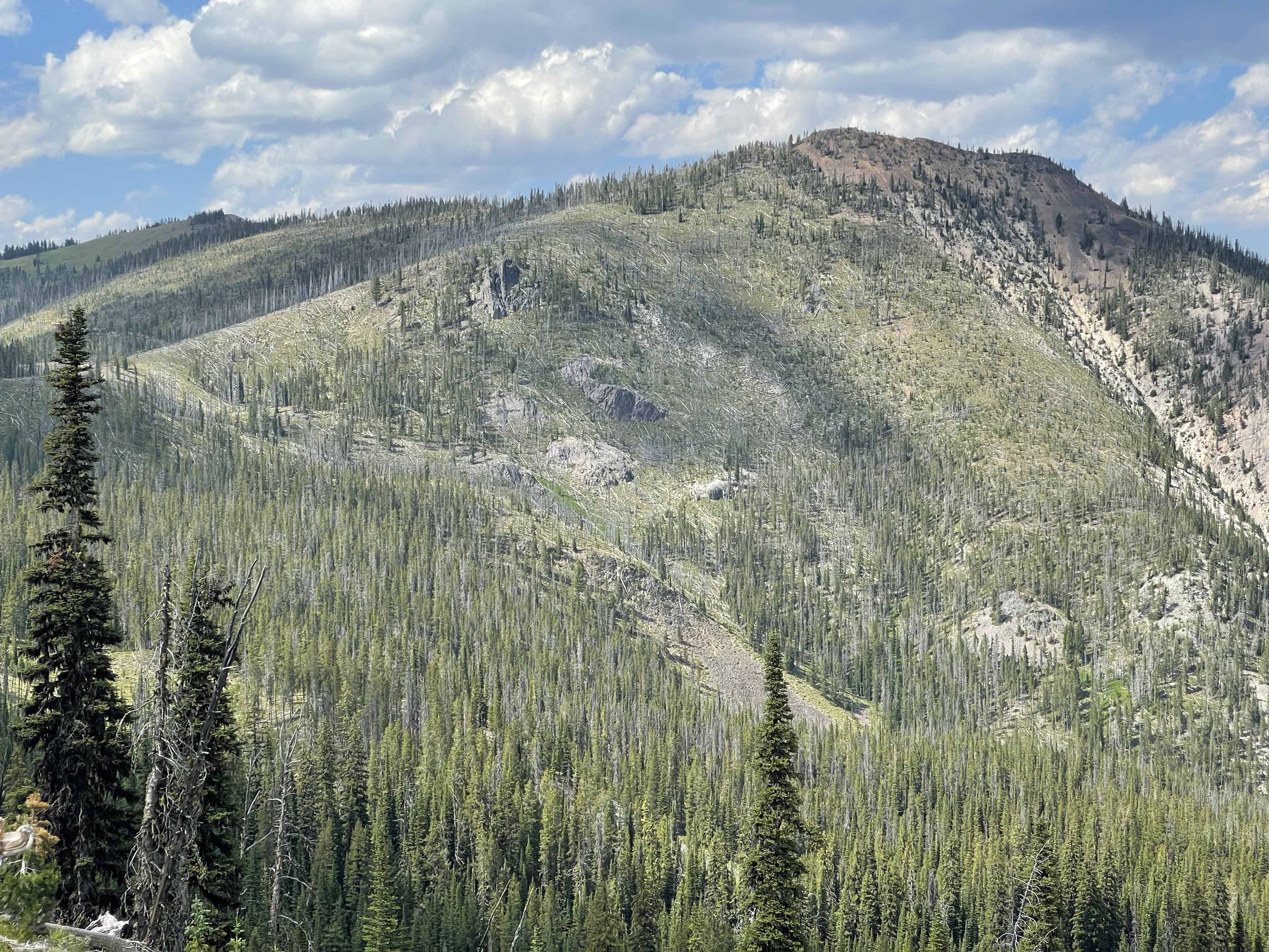 Directions: Begin at Lost Trail Pass 45.6939, -113.9484 between Salmon Idaho and Hamilton Montana. Travel west beyond the Rest Area and through the Lost Trail Ski Area parking lot. Road #5734 is between maintenance buildings on the east side of the facility. Ya, you’ll feel like you are entering a summer storage area of winter machinery. There is no road sign.